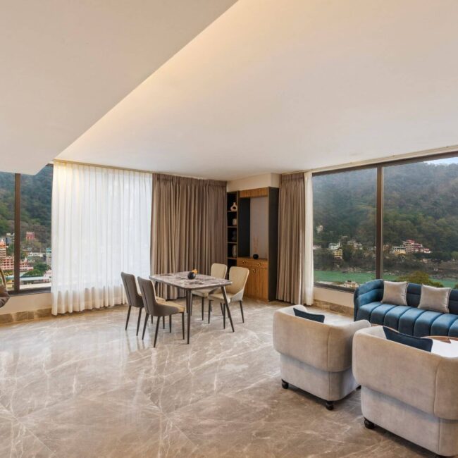 Experience the harmony of nature and luxury at ZANA by the Ganges, Rishikesh. Just a short walk from the iconic Lakshman Jhula, ZANA welcomes you with serene views of the sacred Ganges and the surrounding hills, creating the perfect setting for a rejuvenating getaway. This premium hotel blends modern design with refined elegance, offering thoughtfully crafted spaces and inspiring experiences that reflect the true essence of Rishikesh.